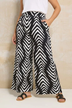 Craquez pour notre pantalon wide leg noir et blanc abstrait à poches. Léger et classe, vous allez l’adorer.