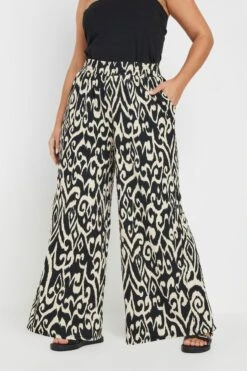 Craquez pour notre pantalon wide leg noir et crème texturé abstrait en jersey.