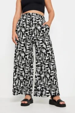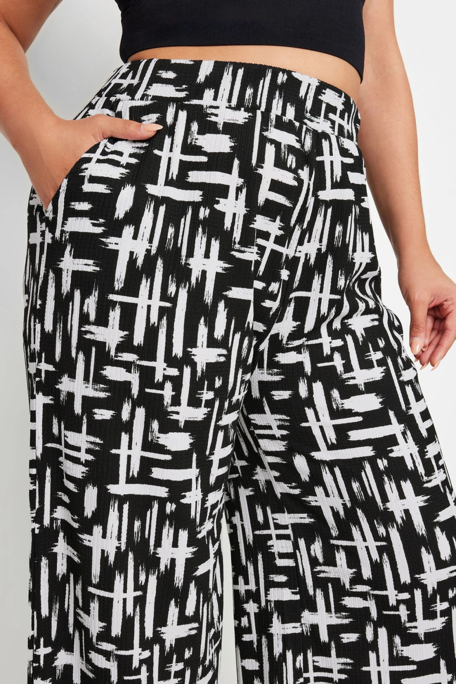 Complétez votre garde-robe de saison et faites le plein de pièces tendances avec notre pantalon wide leg noir griffé blanc texturé.