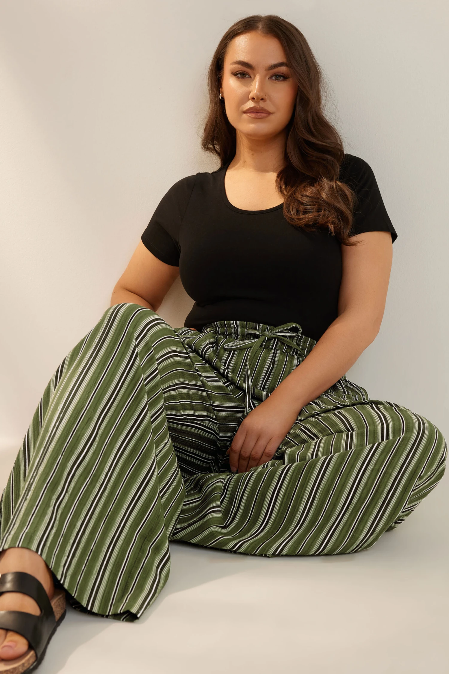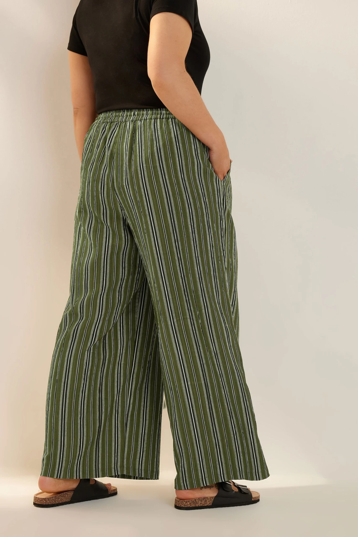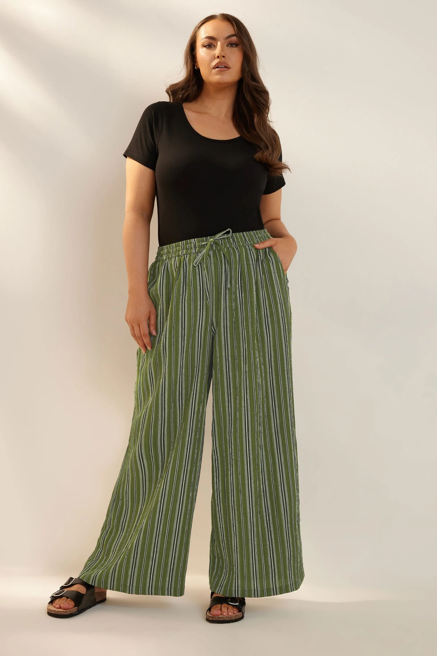 Craquez pour notre pantalon wide leg vert à rayures texturé. Féminin, tendance et confortable, vous allez l’adorer.
