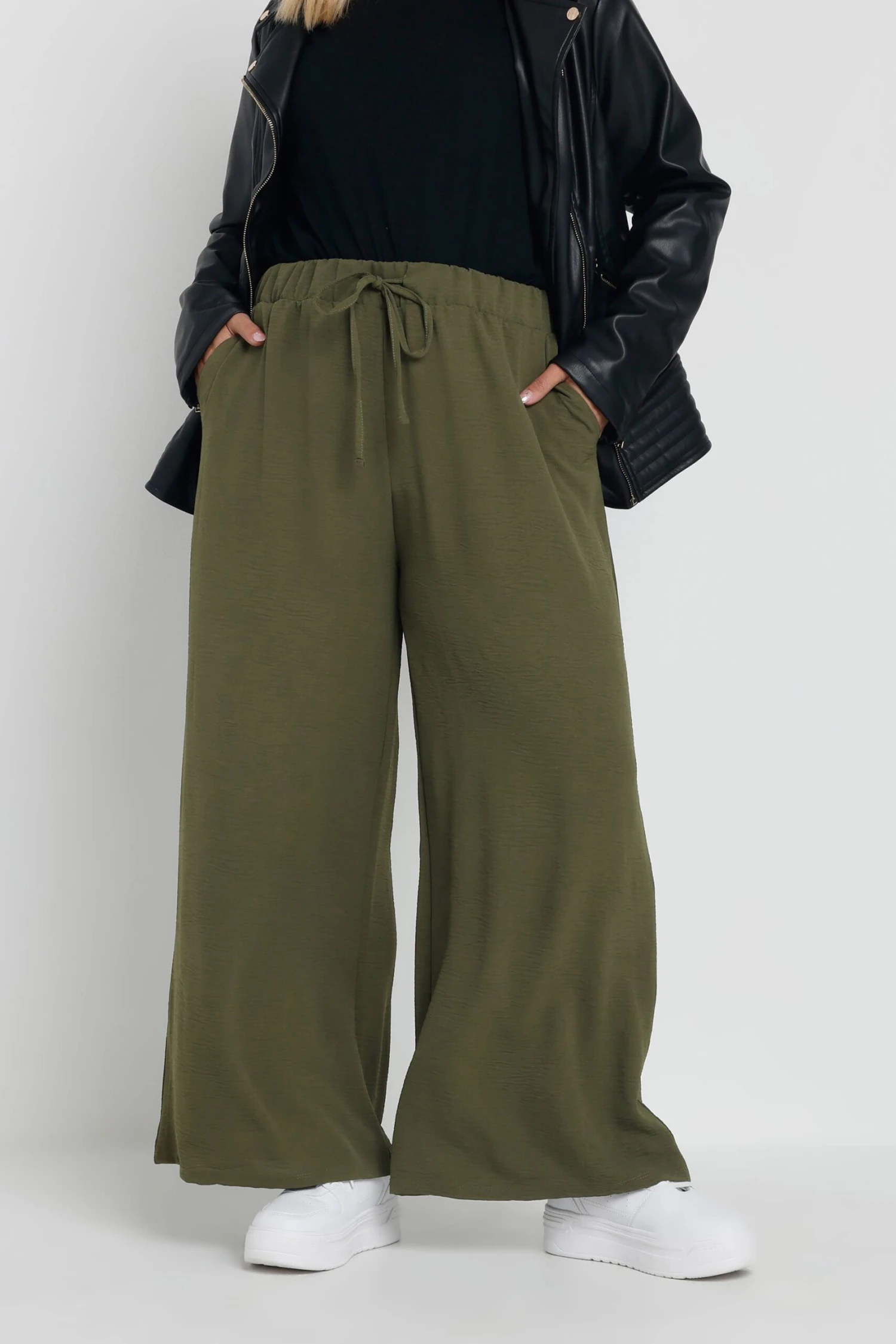 Faites le plein de pièces essentielles de saison avec notre pantalon wide leg vert kaki crêpé à poches. Classe et raffiné, vous pourrez le porter en plusieurs styles au fil des saisons.