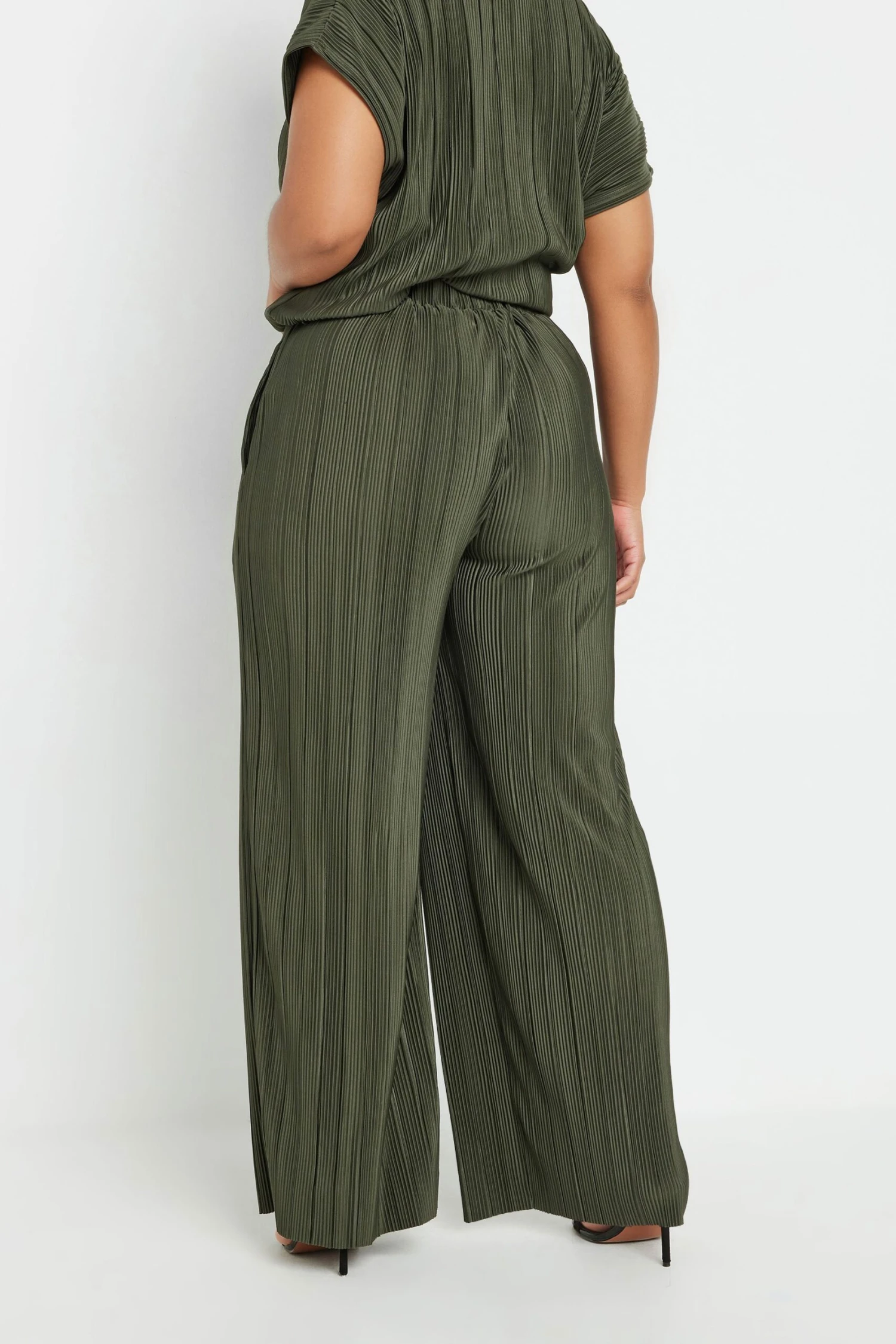 Craquez pour notre pantalon wide leg vert kaki plissé. Féminin et confortable, vous allez adorer le porter en plusieurs styles au fil des saisons.