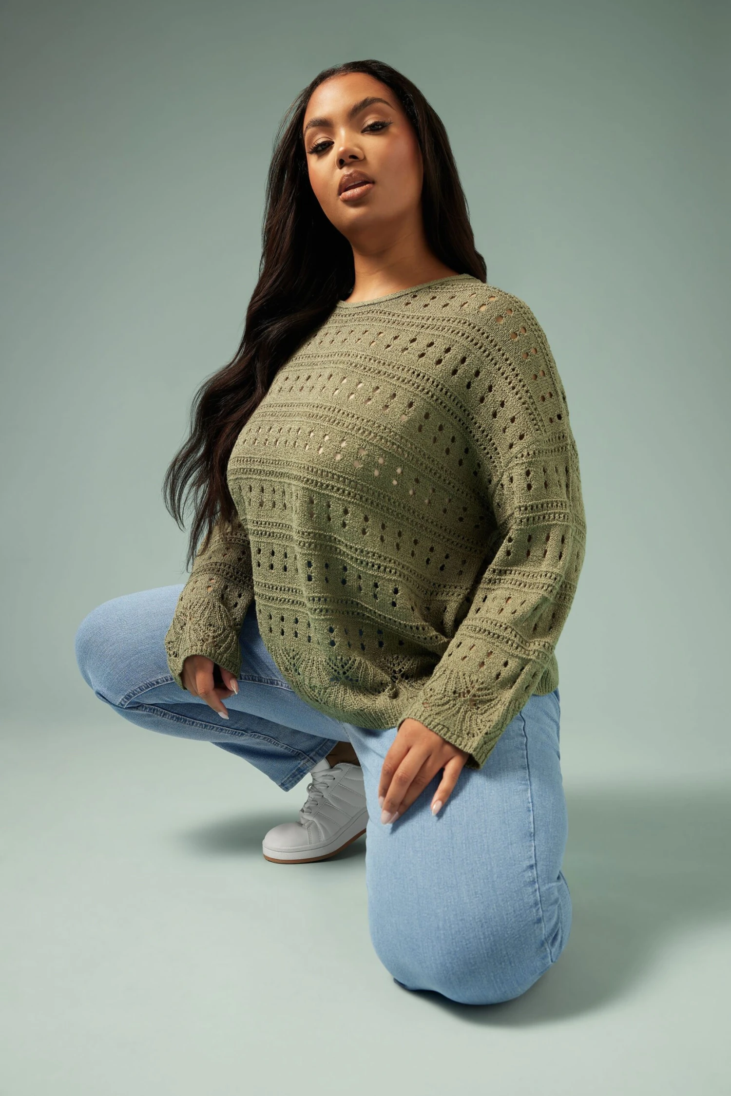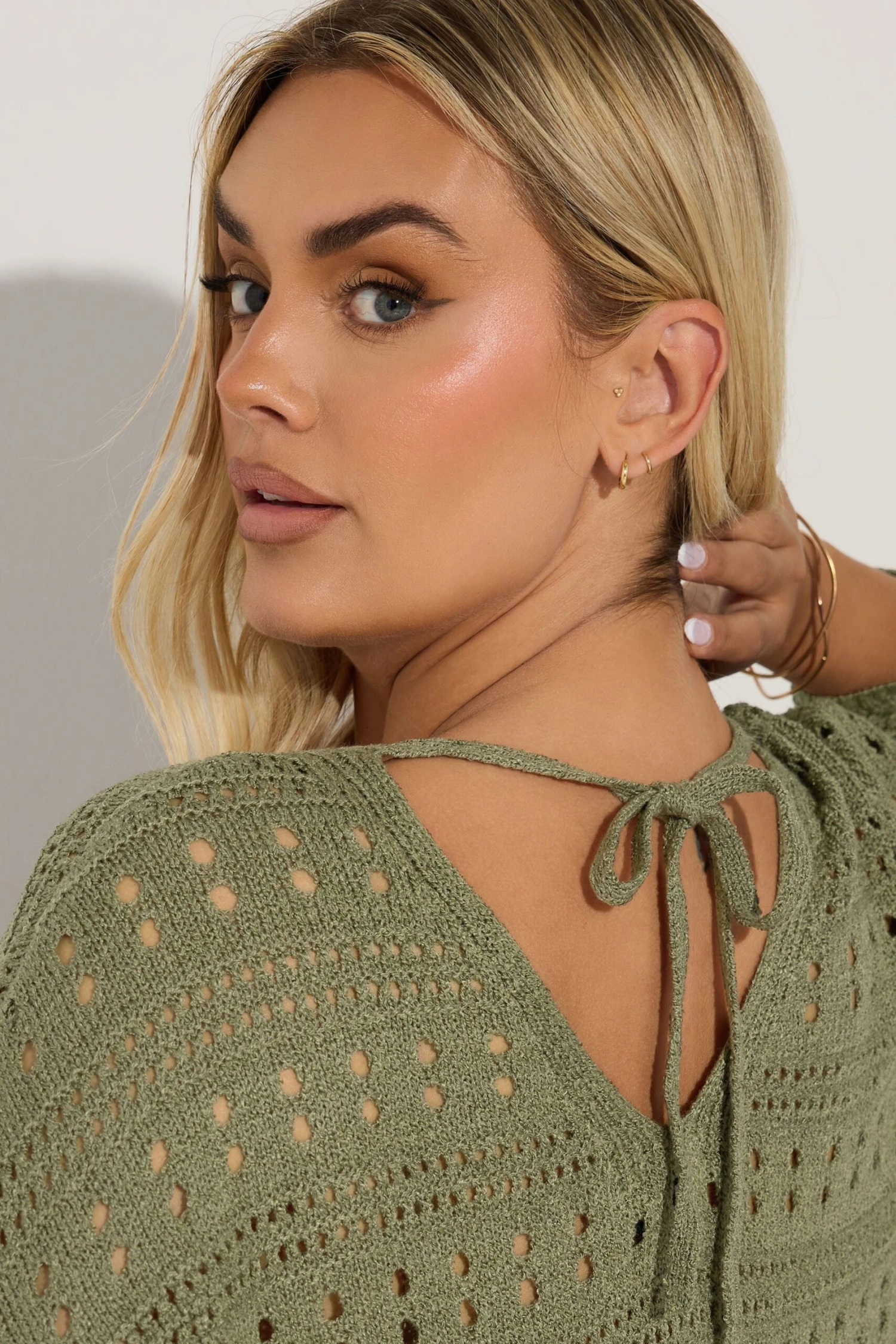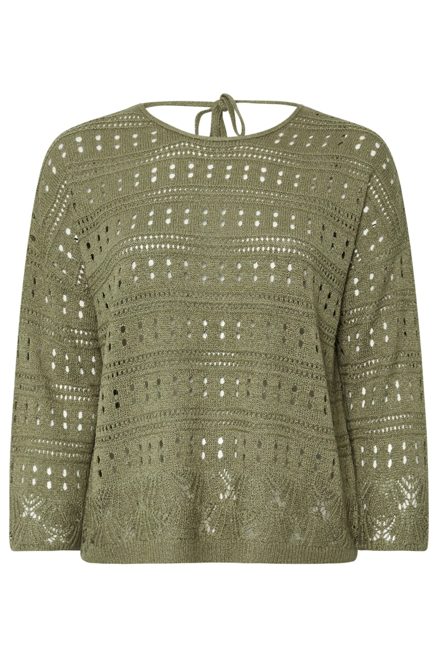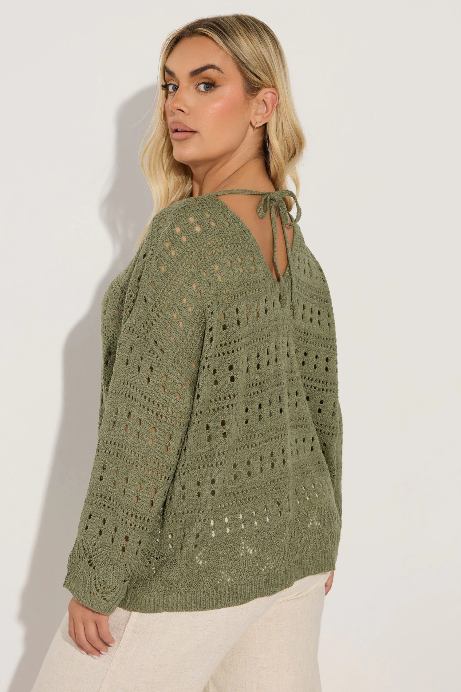 Complétez votre garde-robe de saison avec notre pull en maille vert kaki découpé au dos.