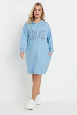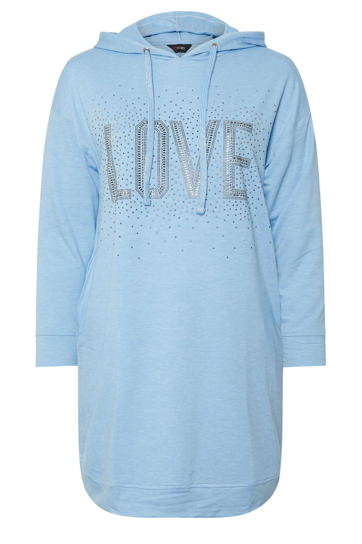 Restez cosy cette saison avec notre robe-pull bleue ciel à capuche strass ‘Love’. Confortable et tendance, vous pourrez la porter en plusieurs styles.