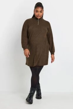 Faites le plein de pièces cosy de saison avec notre robe-pull marron nervurée fermeture éclair.