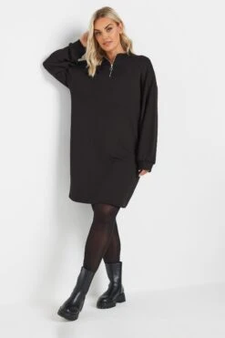 Restez cosy cette saison avec notre robe-pull noire en maile fermeture éclair. Tendance et cosy, vous ne voudrez plus vous en séparer.