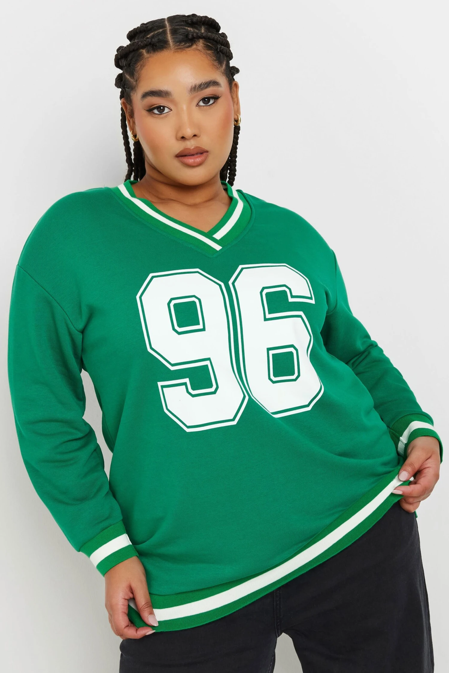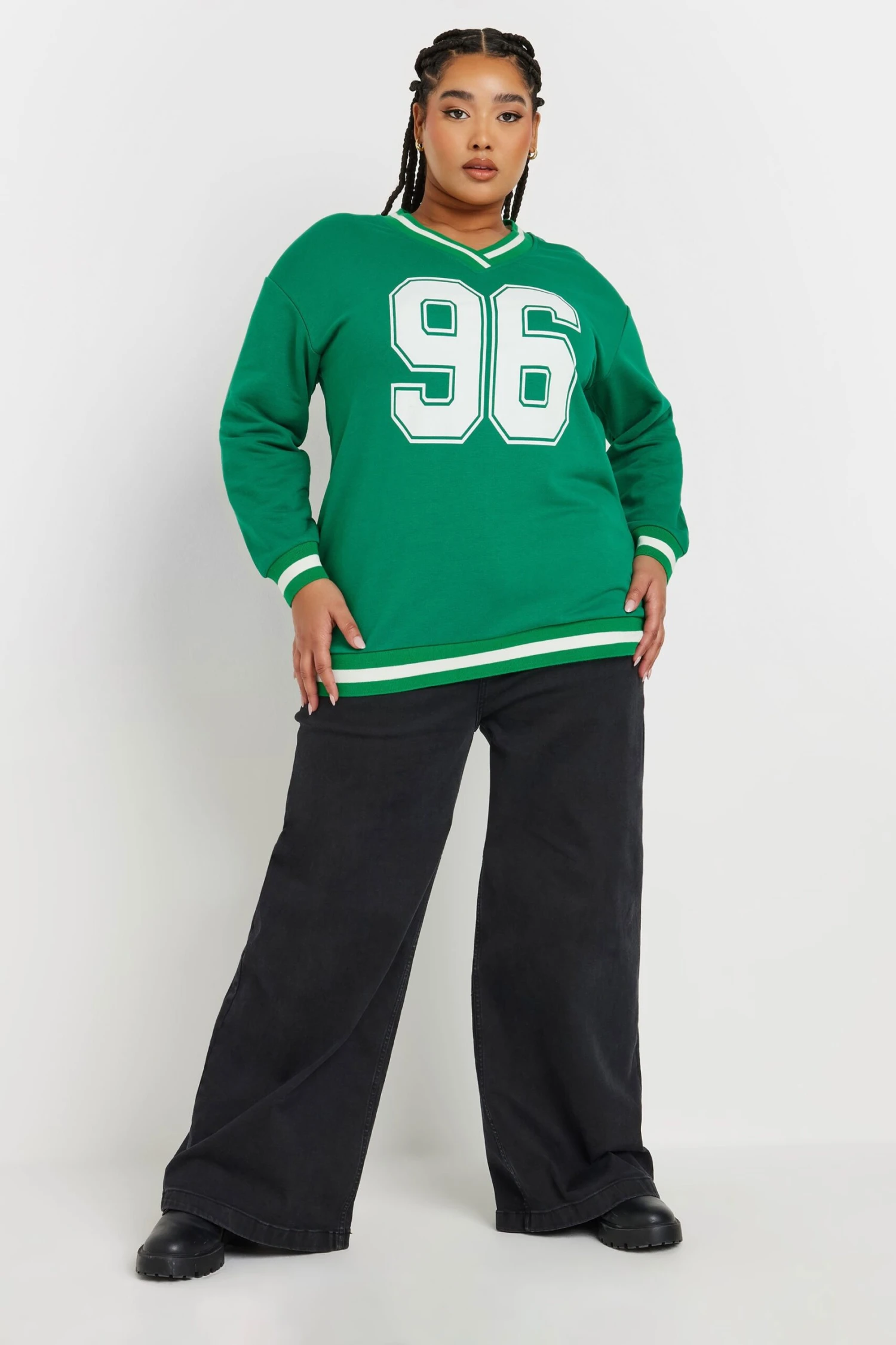 Faites le plein de pièces essentielles de saison avec notre sweatshirt varsity vert et blanc ’96’. Tendance, féminin et cosy, vous ne voudrez plus vous en séparer.