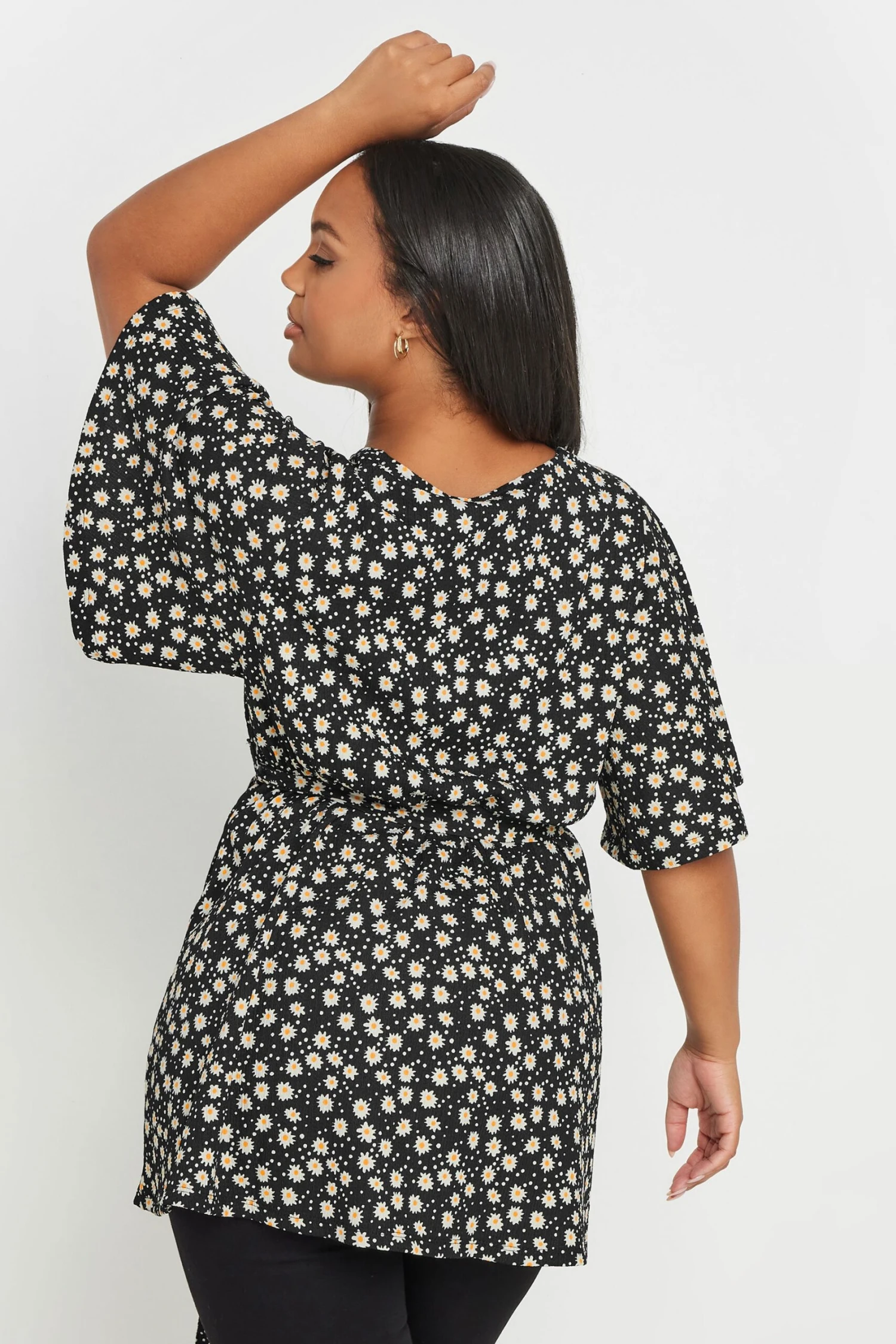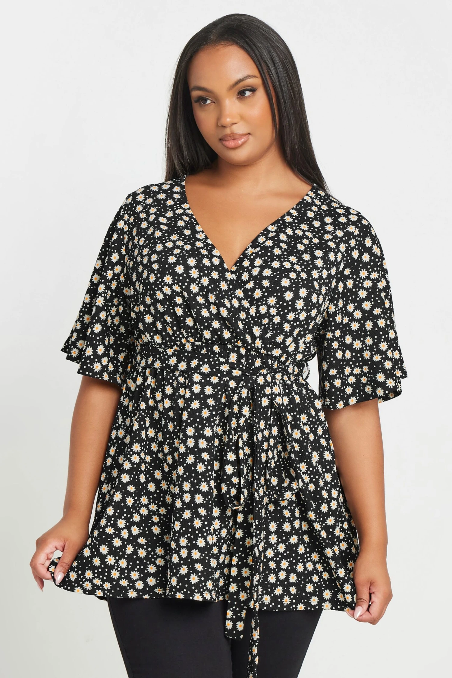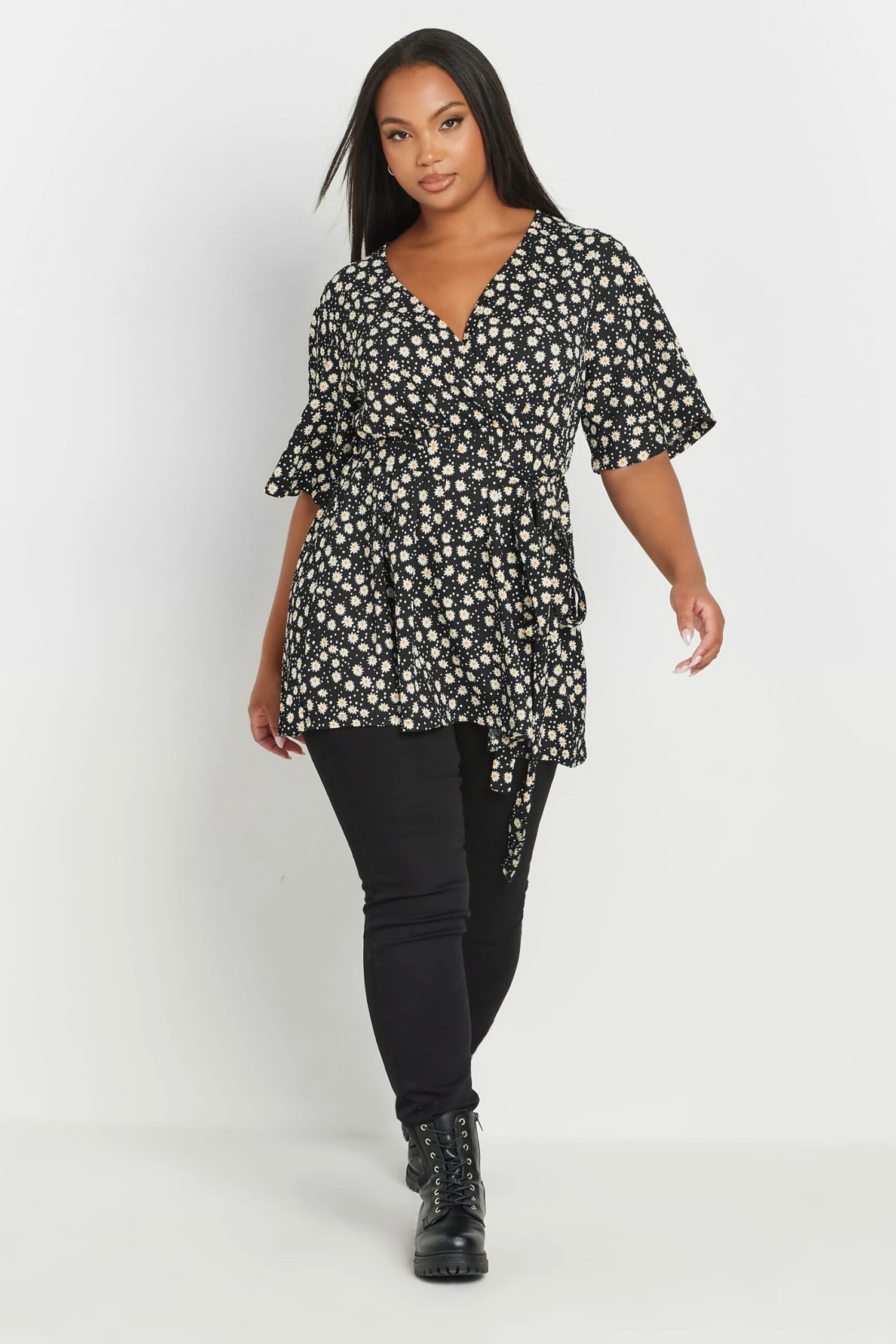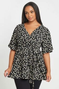 Craquez pour notre top noir et crème cache-coeur texturé floral. Féminin et coloré, vous allez l’adorer cette saison.