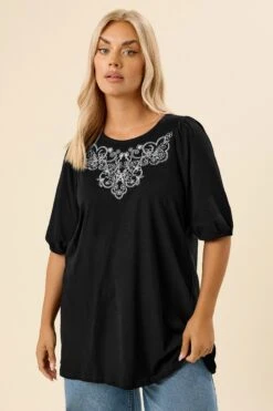 Craquez pour notre top noir design floral brodé manches bouffantes. Féminin et léger, vous allez adorer le porter en plusieurs styles.