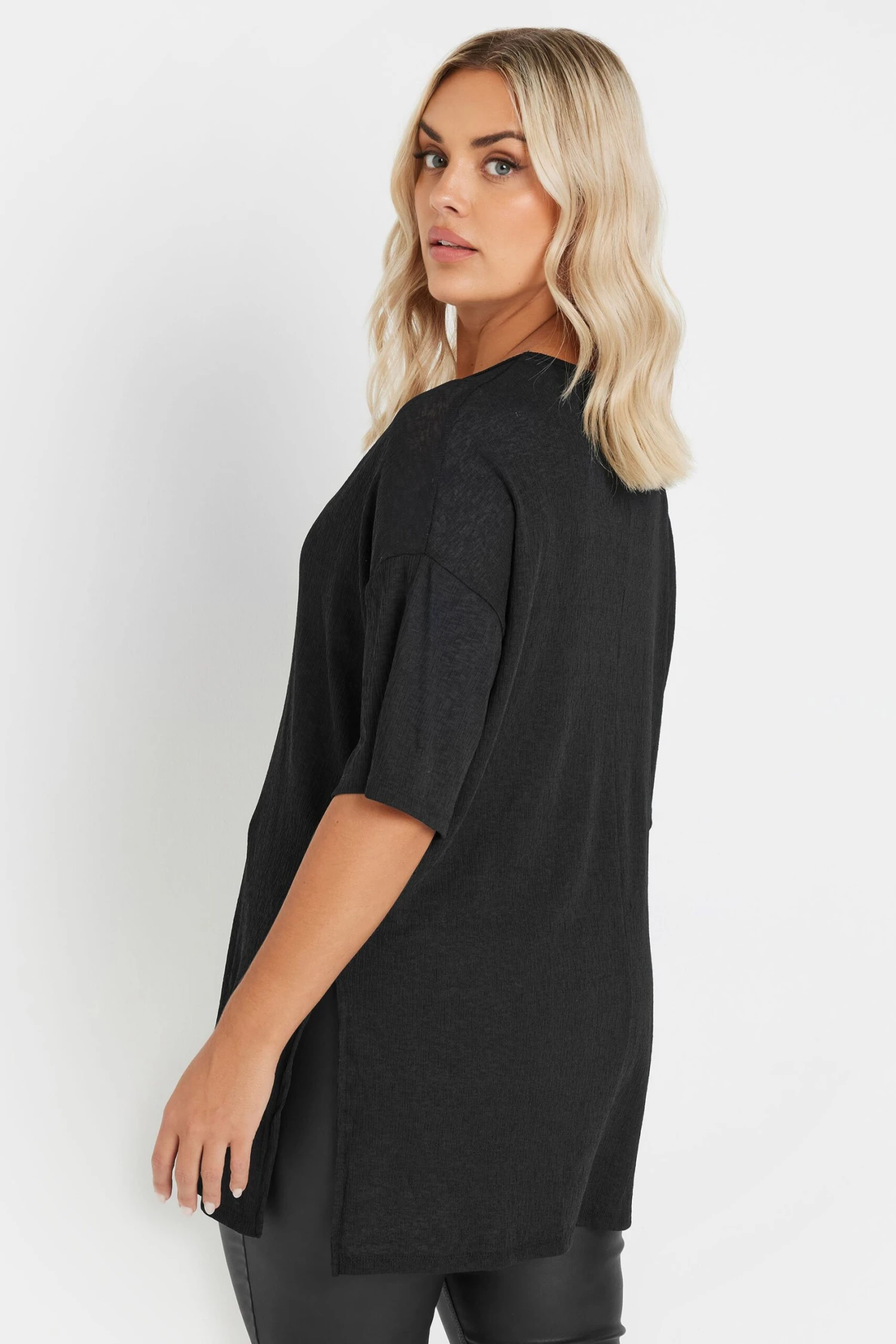 Craquez pour notre top noir léger texturé à fentes. Féminin, classe et léger, vous pourrez le porter en plusieurs styles cette saison.