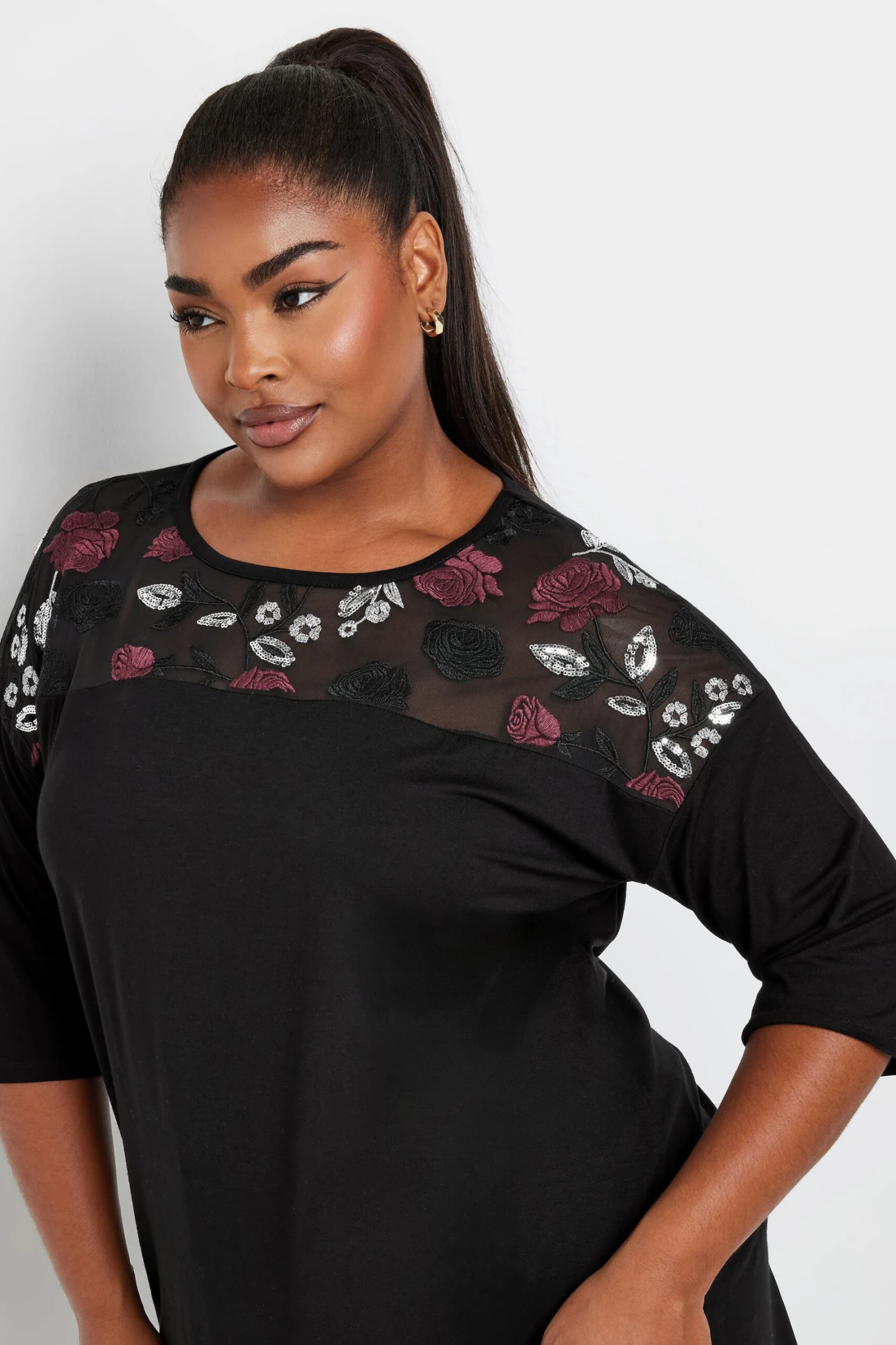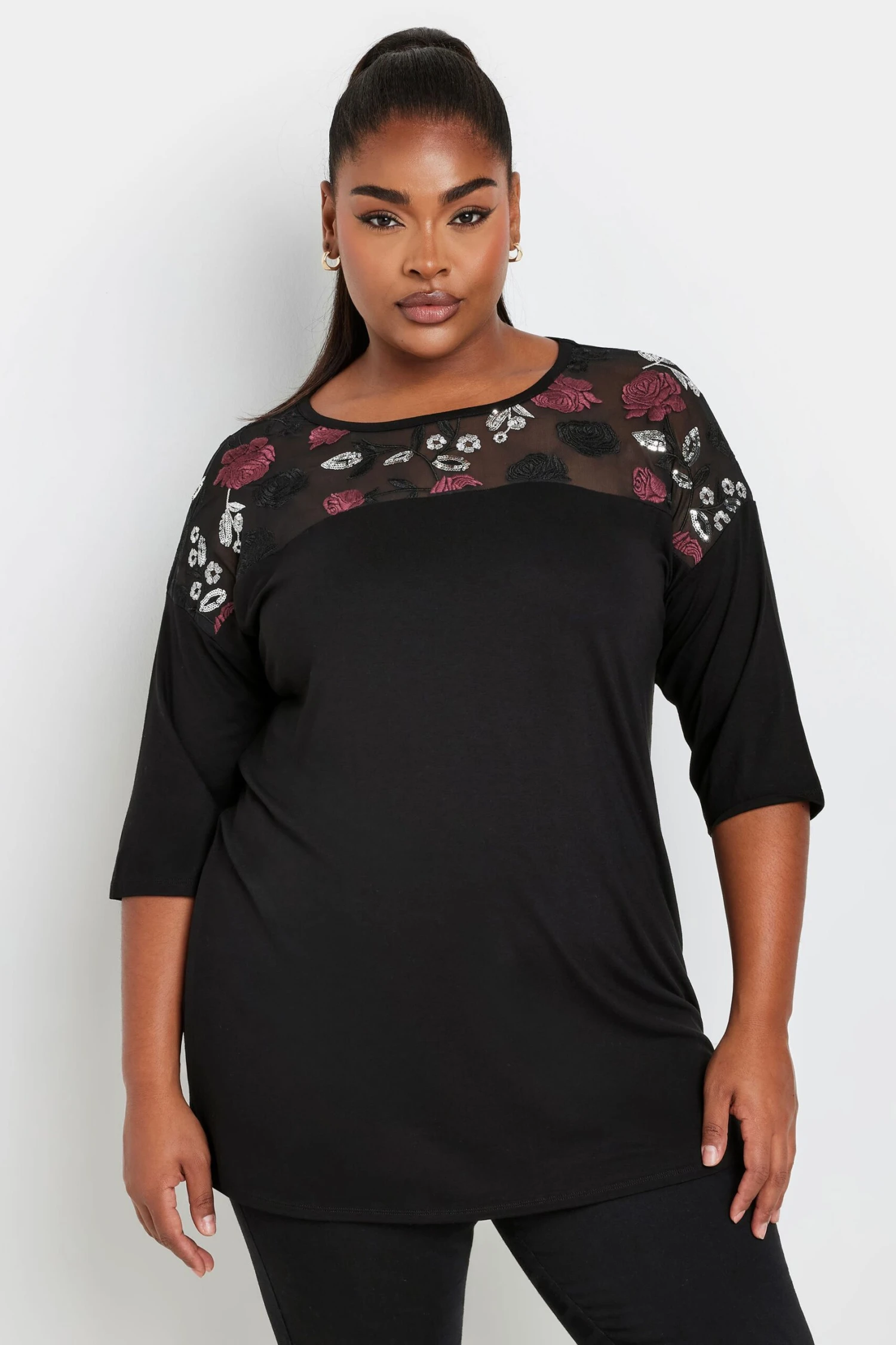 Craquez pour notre top noir et rose volanté empiècement filet et floral. Féminin et confortable, vous allez adorer le porter au fil des saisons.