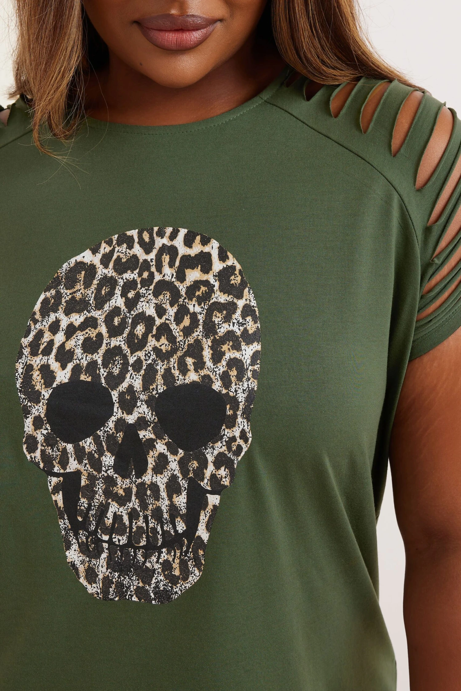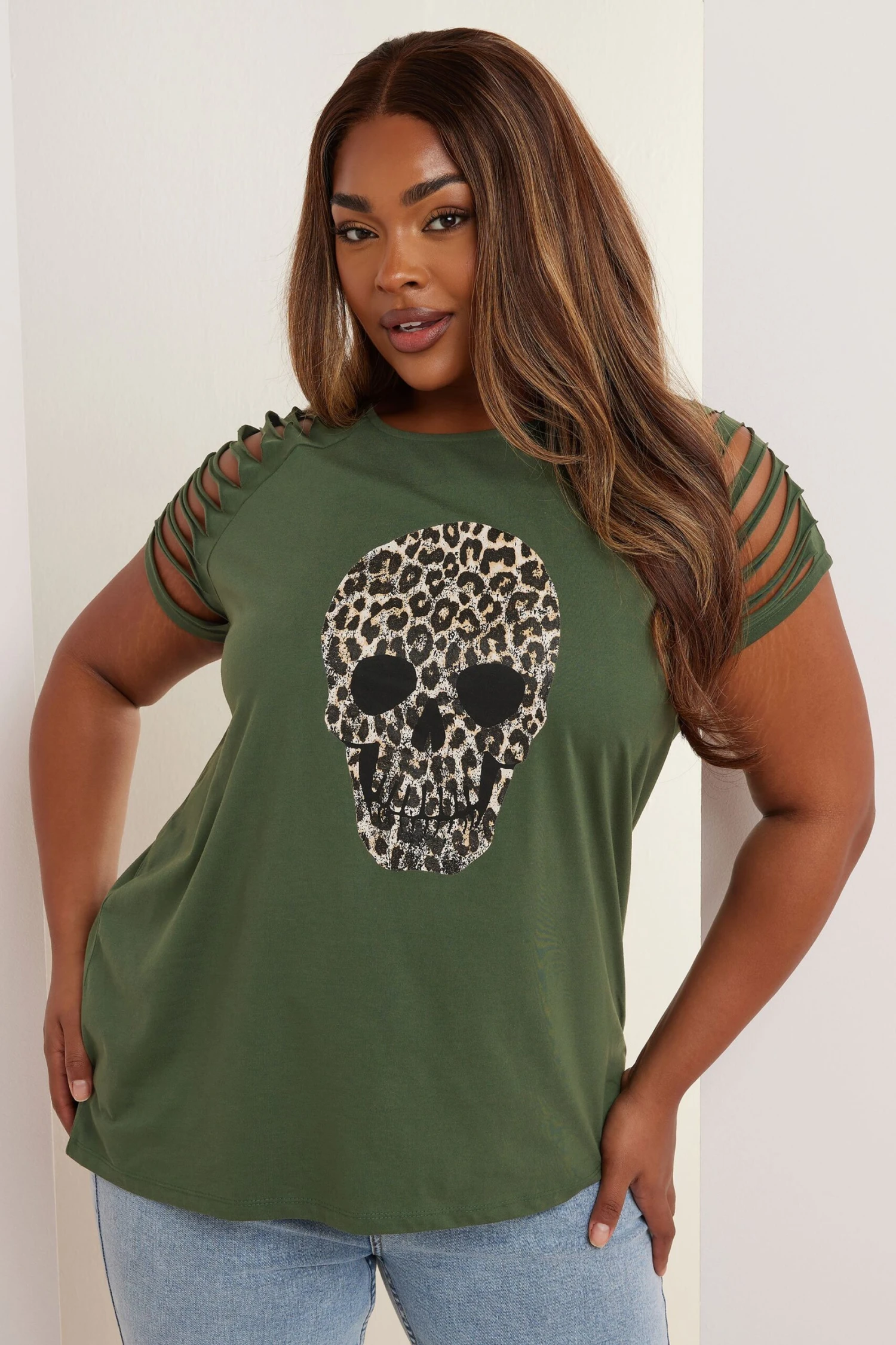 Craquez pour notre top vert kaki squelerre manches courtes découpées. Féminin, tendance et léger, vous allez l’adorer.